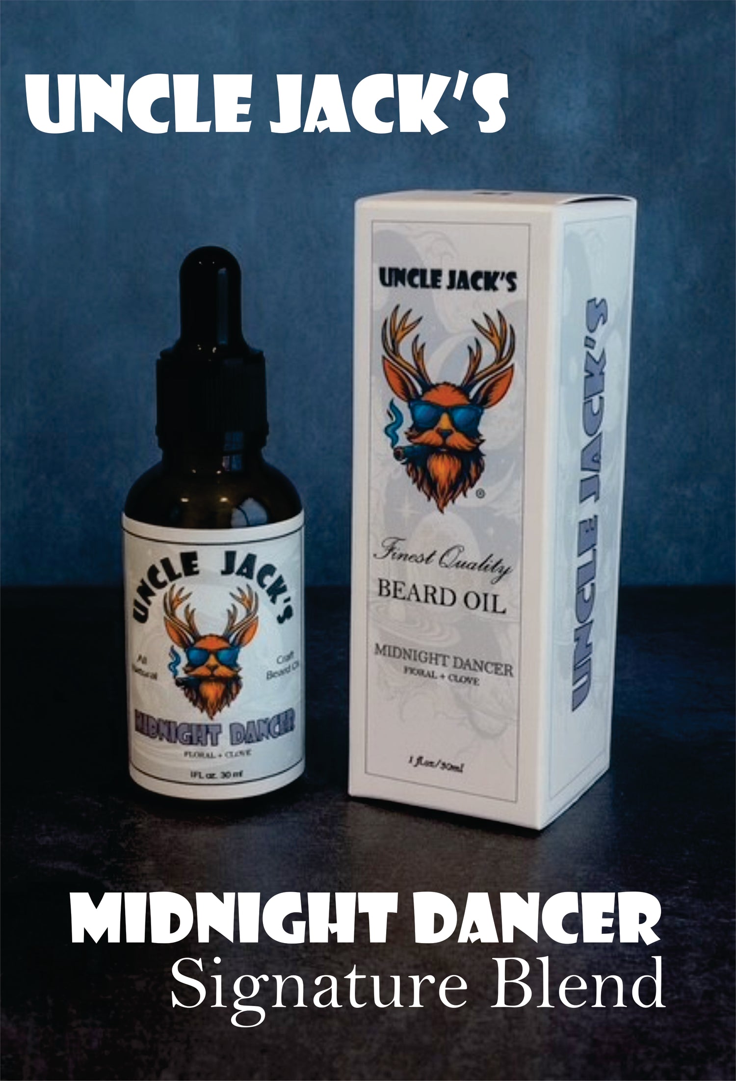 Step into the night with a scent that owns the room. Mdinight Dancer is one of Uncle Jack's signature beard oils, crafted for those who move with confidence and leave an impression long after they're gone. With its intoxicating blend of smoky, depth, smooth sophistication, and a touch of mystery, this oil conditions your beard while setting the tone for adventure.