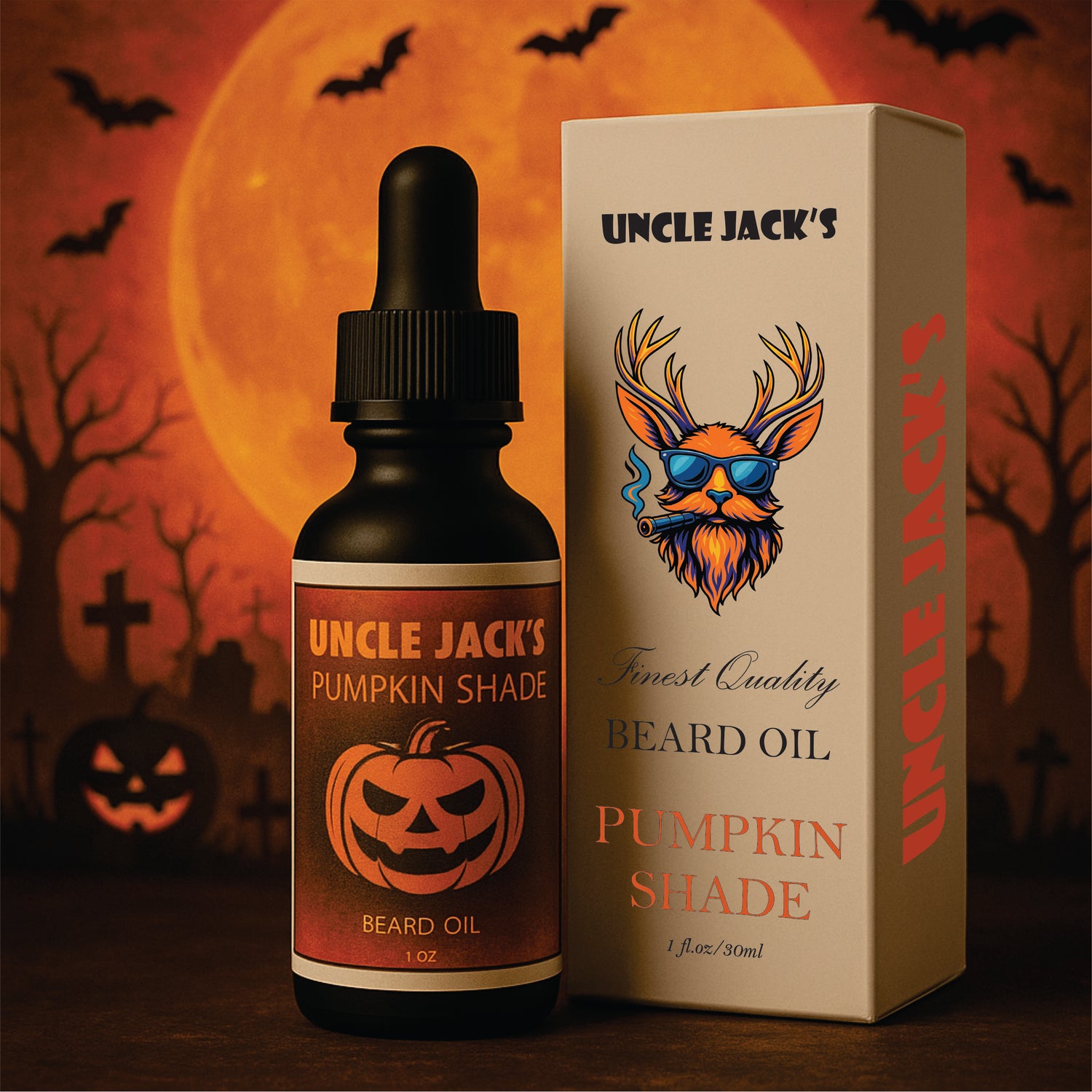 Bring the spirit of fall straight to your beard with Uncle Jack's Pumpkin Shade. This blend captures the warmth and mystery of autumn nights with a bold, spiced pumpkin aroma layered with smooth notes of vanilla and a hint of smoky wood.