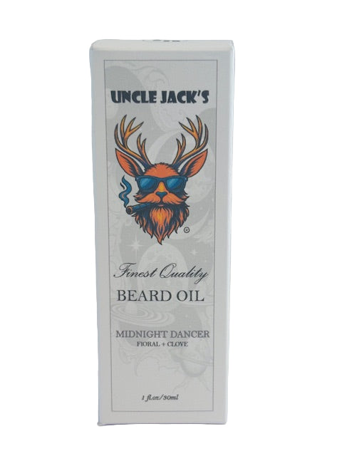 MIDNIGHT DANCER, a beard oil that captures the thrill of neon lights and velvet nights. Smooth notes of spice and smoke, smooth warm woodiness sandalwood, mingle with a whisper clove and of sweetness, creating a scent that's as daring as it is irresistible. Midnight Dancer is wild, intoxicating, and impossible to forget.